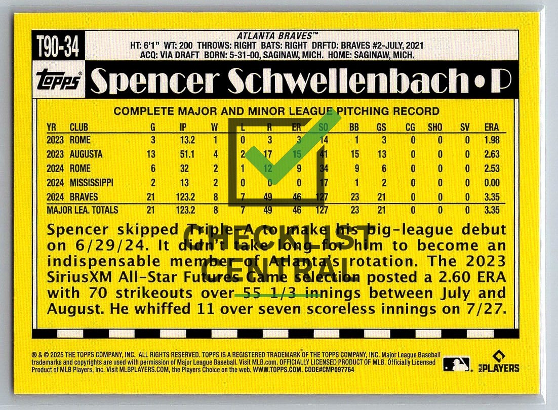 2025 Topps '90 Topps Spencer Schwellenbach #T90-34