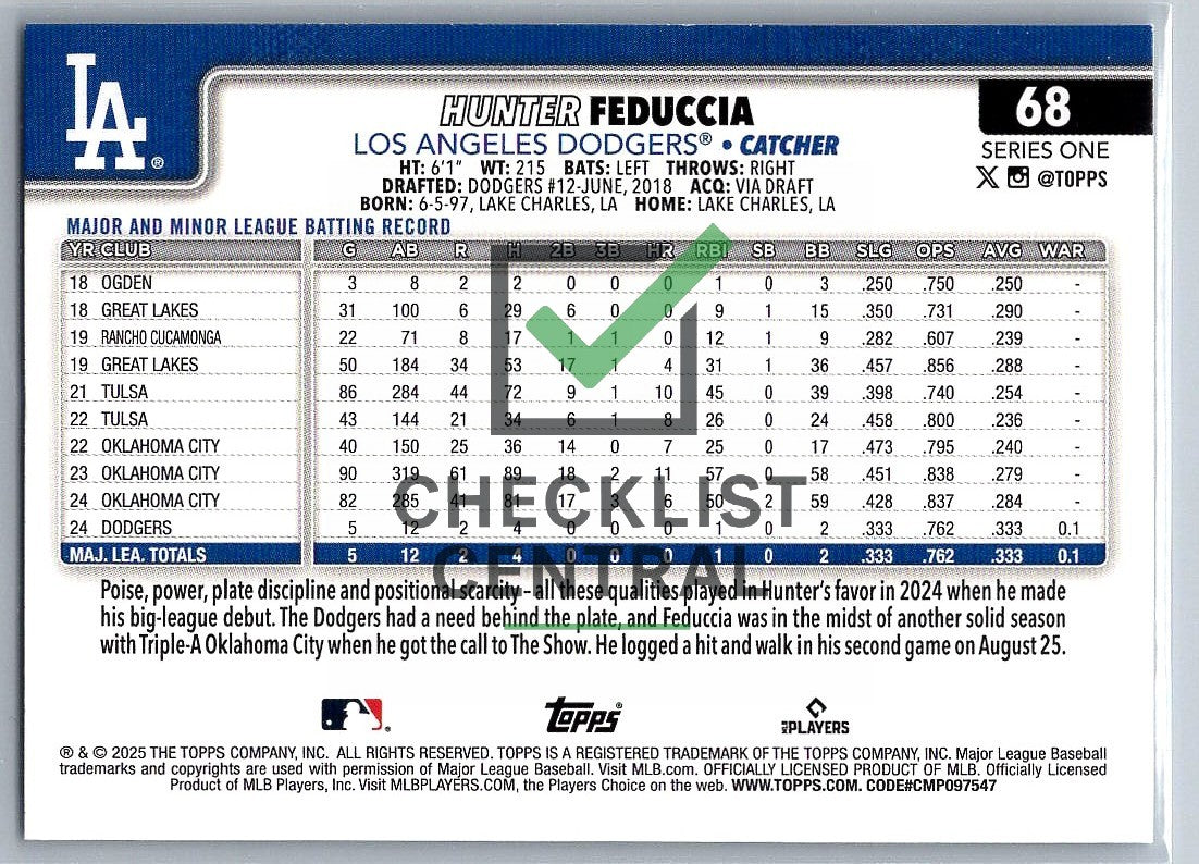 2025 Topps Holo Foil Hunter Feduccia #68 RC.