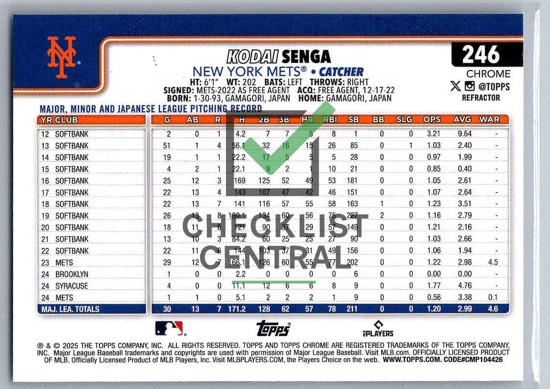 2025 Topps Chrome Refractors Kodai Senga #246