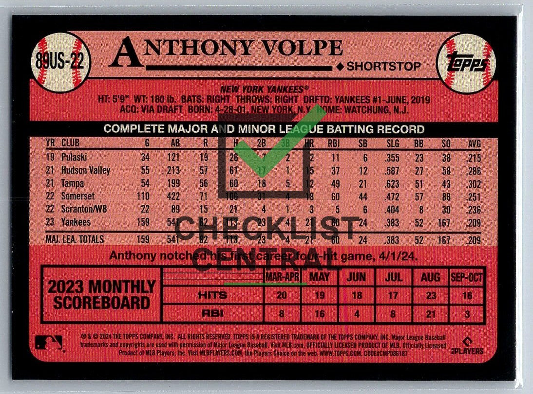 2024 Topps Update '89 Topps Anthony Volpe #89US-22.
