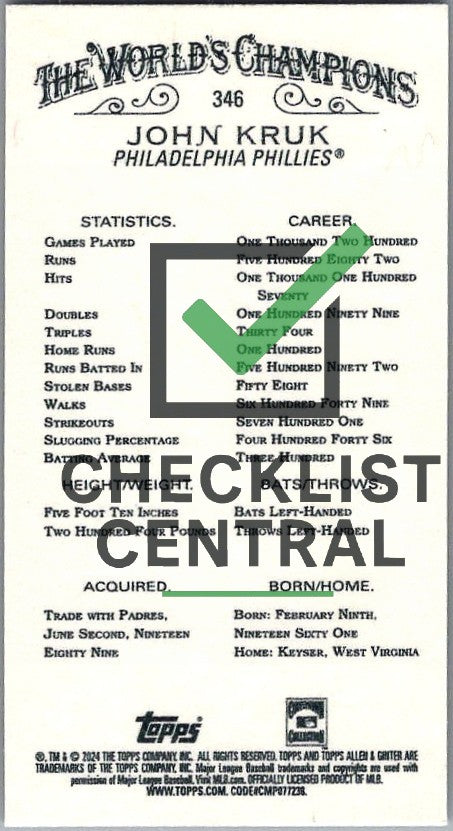 2024 Topps Allen & Ginter Mini Gold Border John Kruk #346.