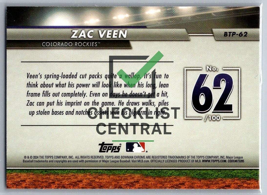 2024 Bowman Chrome Scouts Top 100 Zac Veen #BTP-62