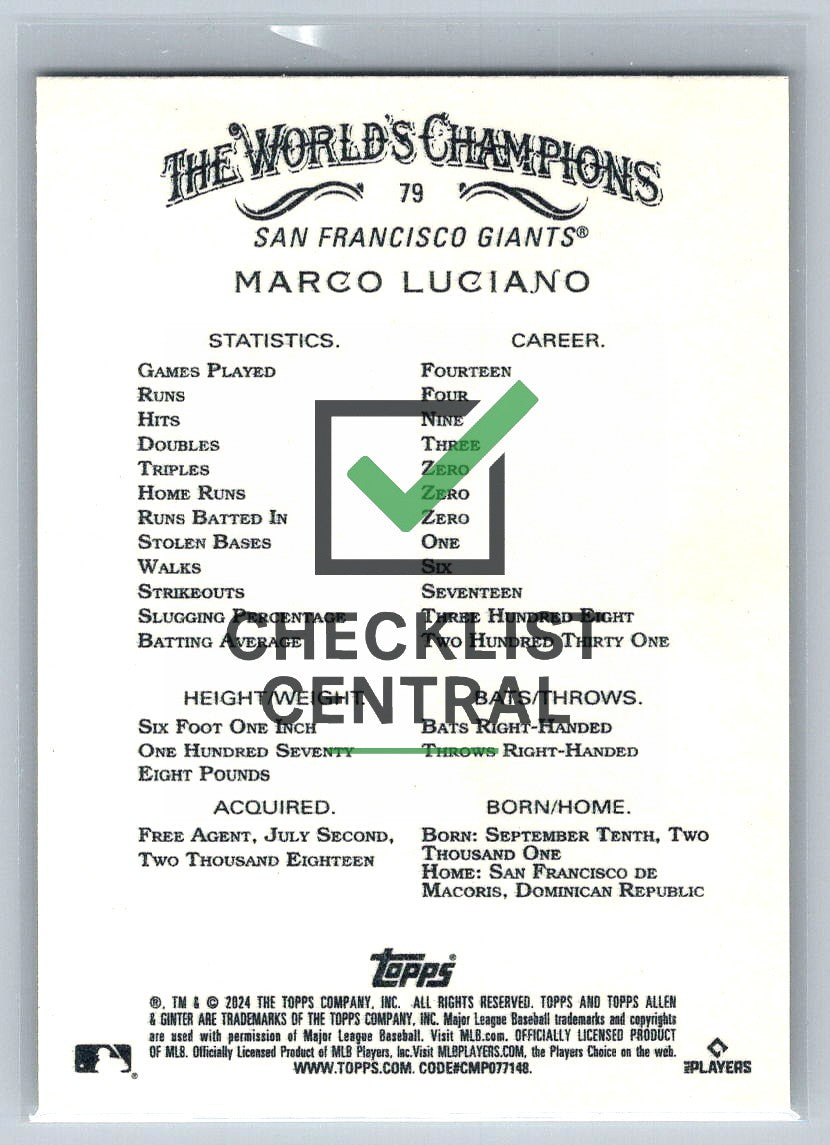 2024 Topps Allen & Ginter Marco Luciano #79 RC.