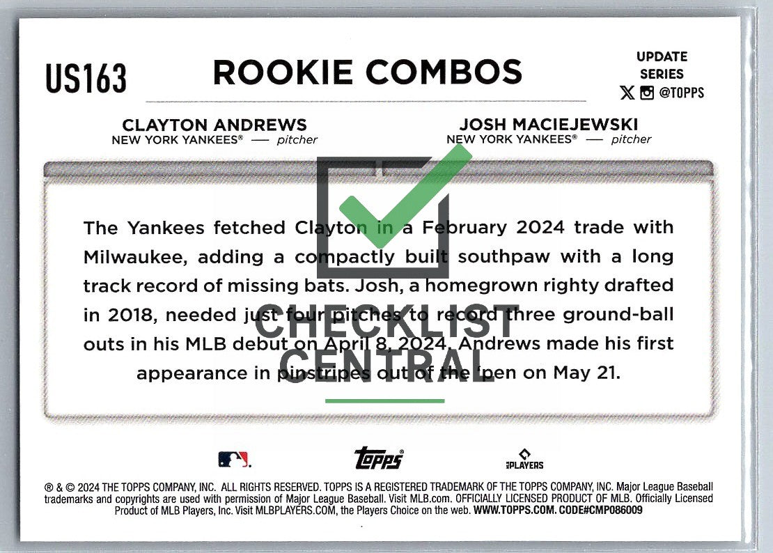 2024 Topps Update Clayton Andrews & Josh Maciejewski #US163 - Rookie Combos.