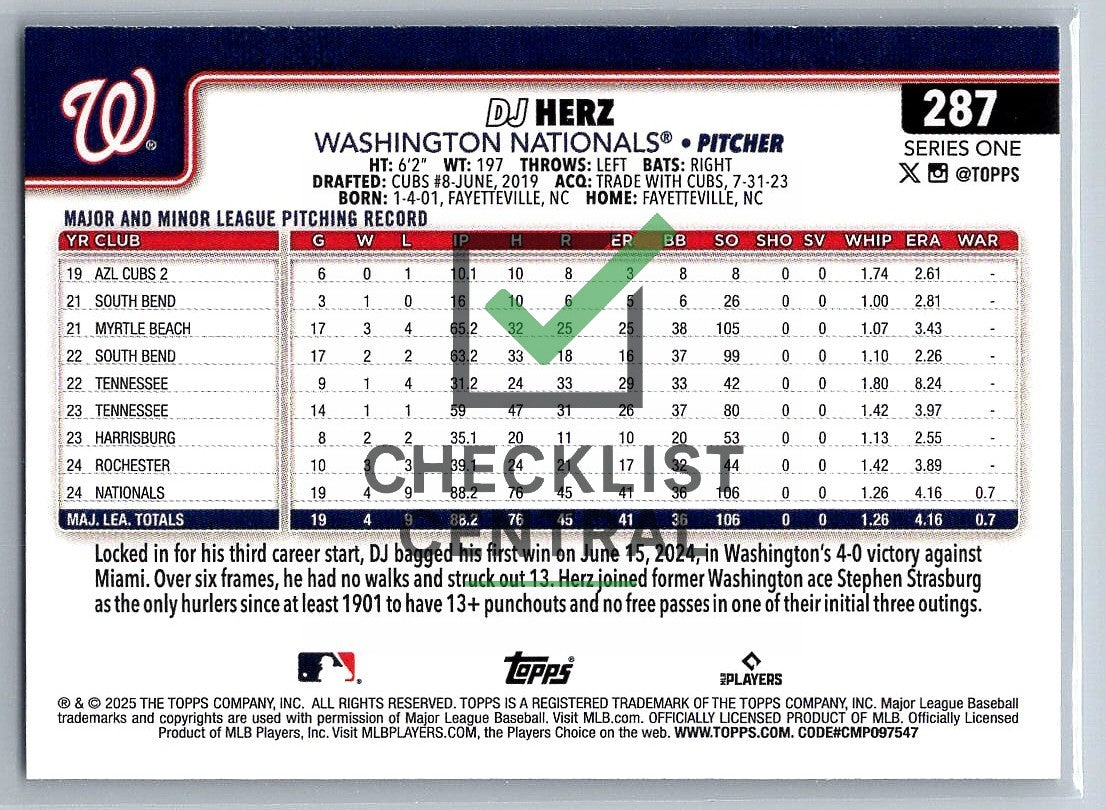 2025 Topps D.J. Herz #287 RC.