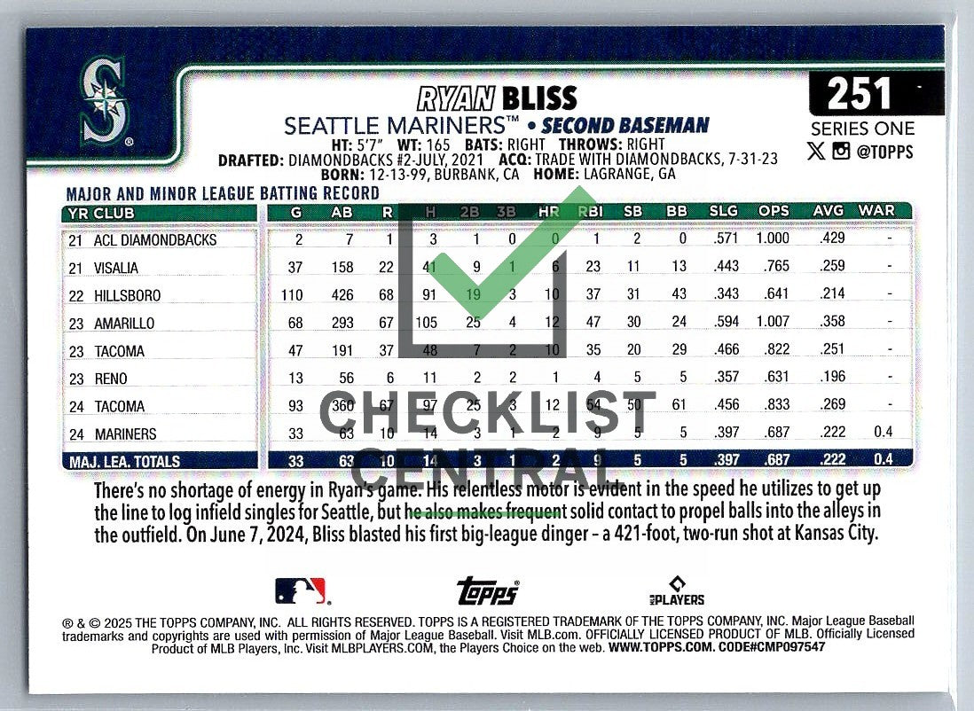 2025 Topps Ryan Bliss #251 RC.