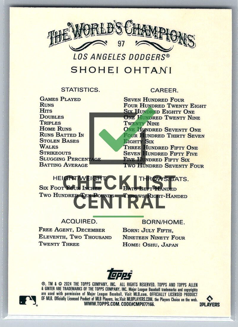 2024 Topps Allen & Ginter Chrome Xfractor Shohei Ohtani #97.
