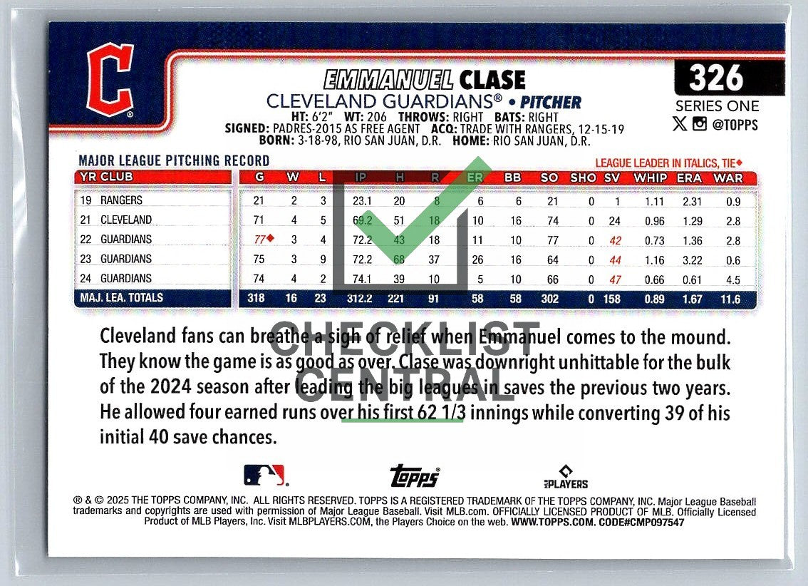 2025 Topps Emmanuel Clase #326.