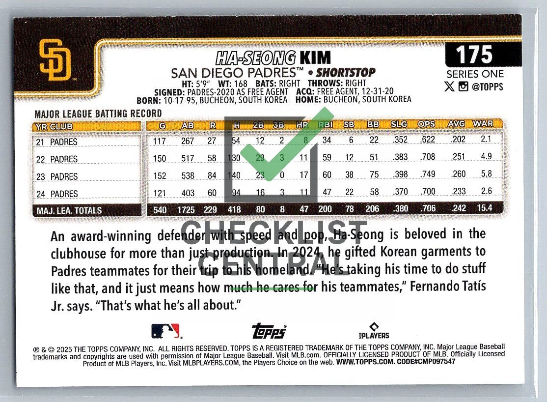 2025 Topps Ha-Seong Kim #175.