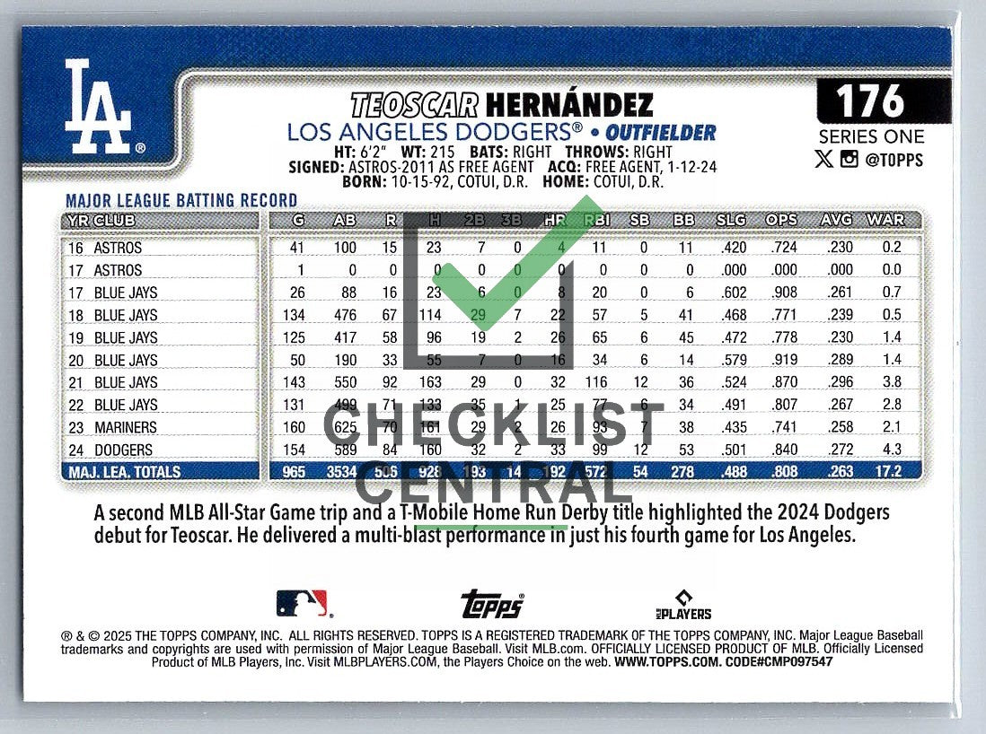 2025 Topps Teoscar Hernández #176.