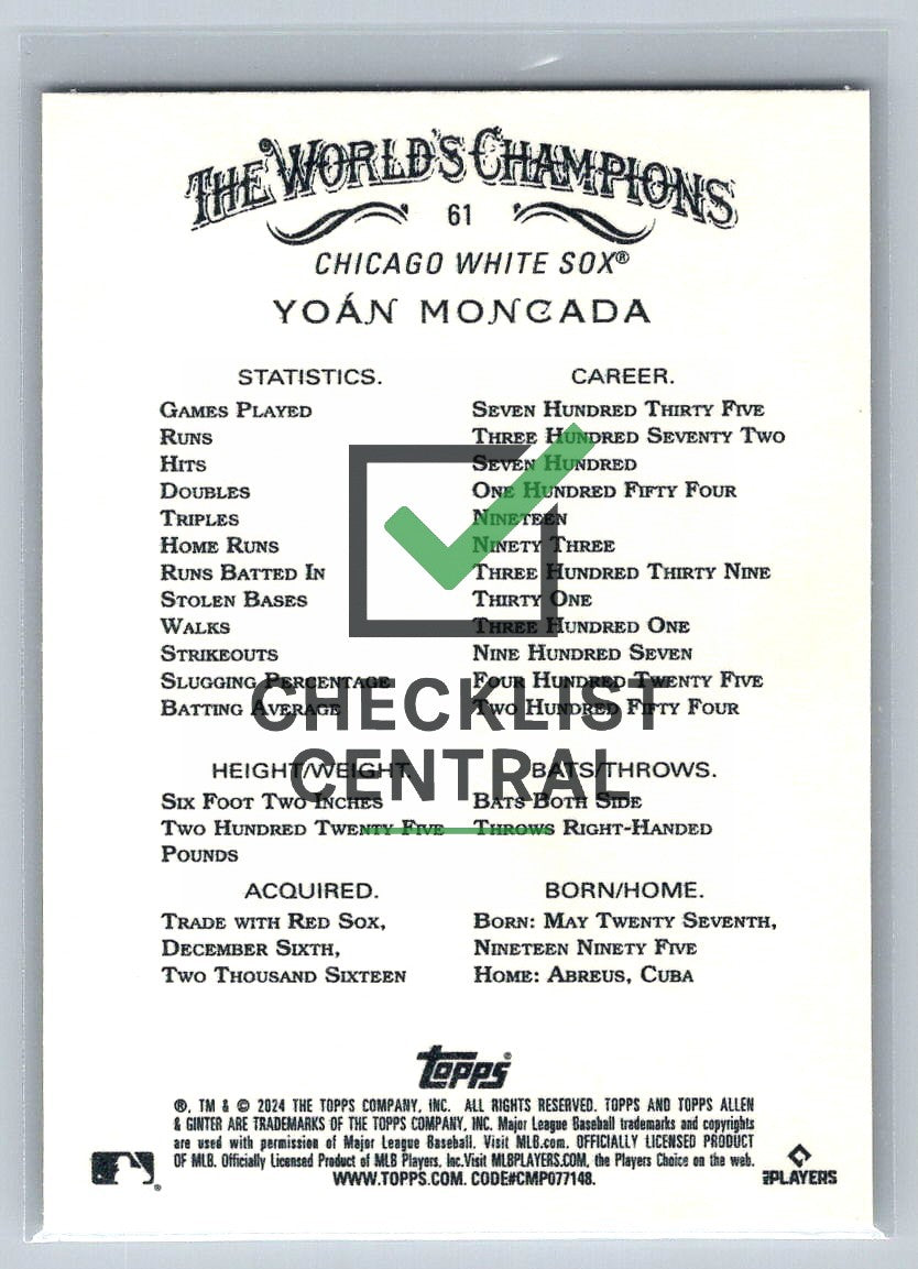 2024 Topps Allen & Ginter Yoan Moncada #61.