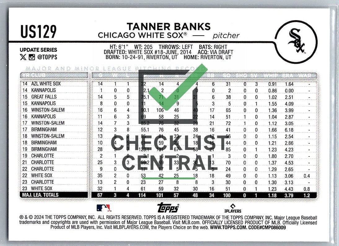 2024 Topps Update Tanner Banks #US129.