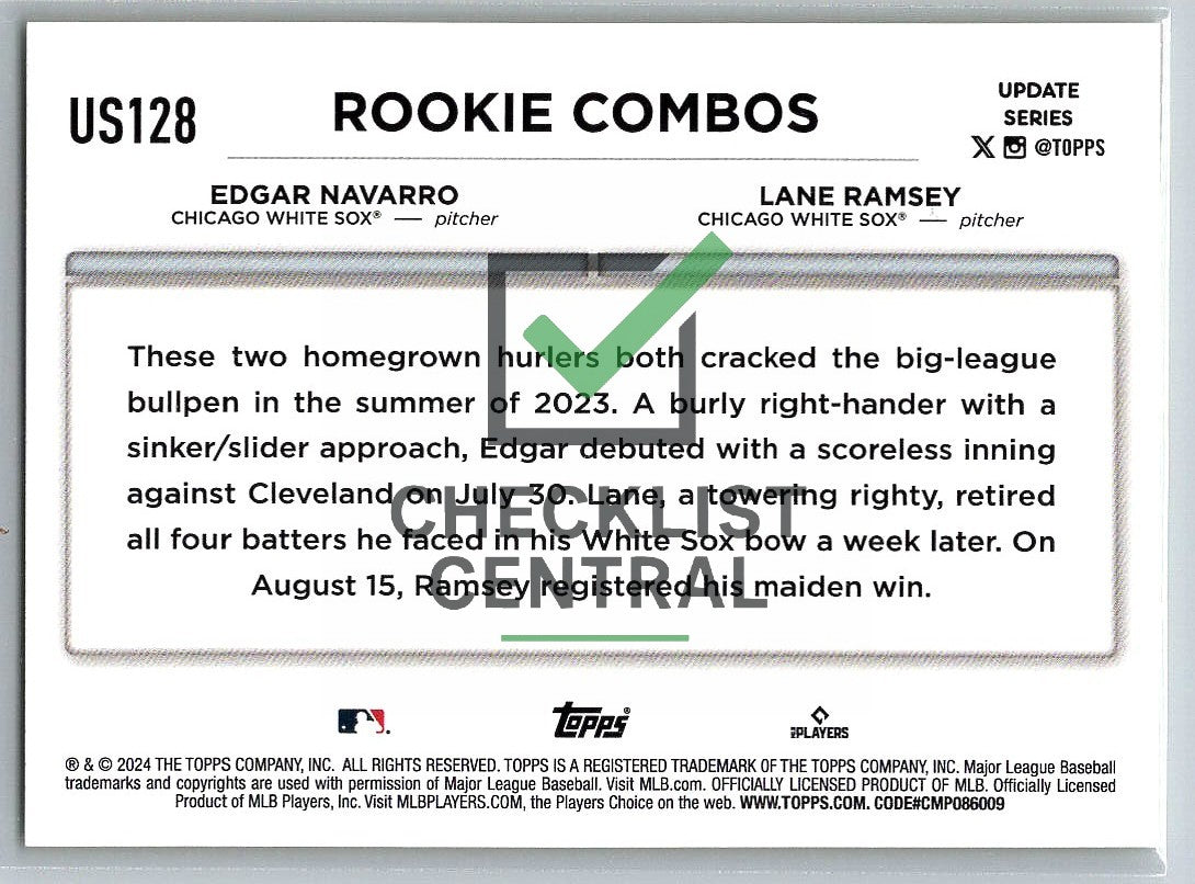 2024 Topps Update Yellow Edgar Navarro & Lane Ramsey #US128 -Rookie Combos.