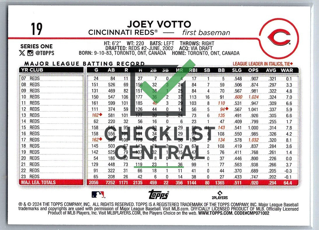 Checklist Central2024 Topps Joey Votto #19