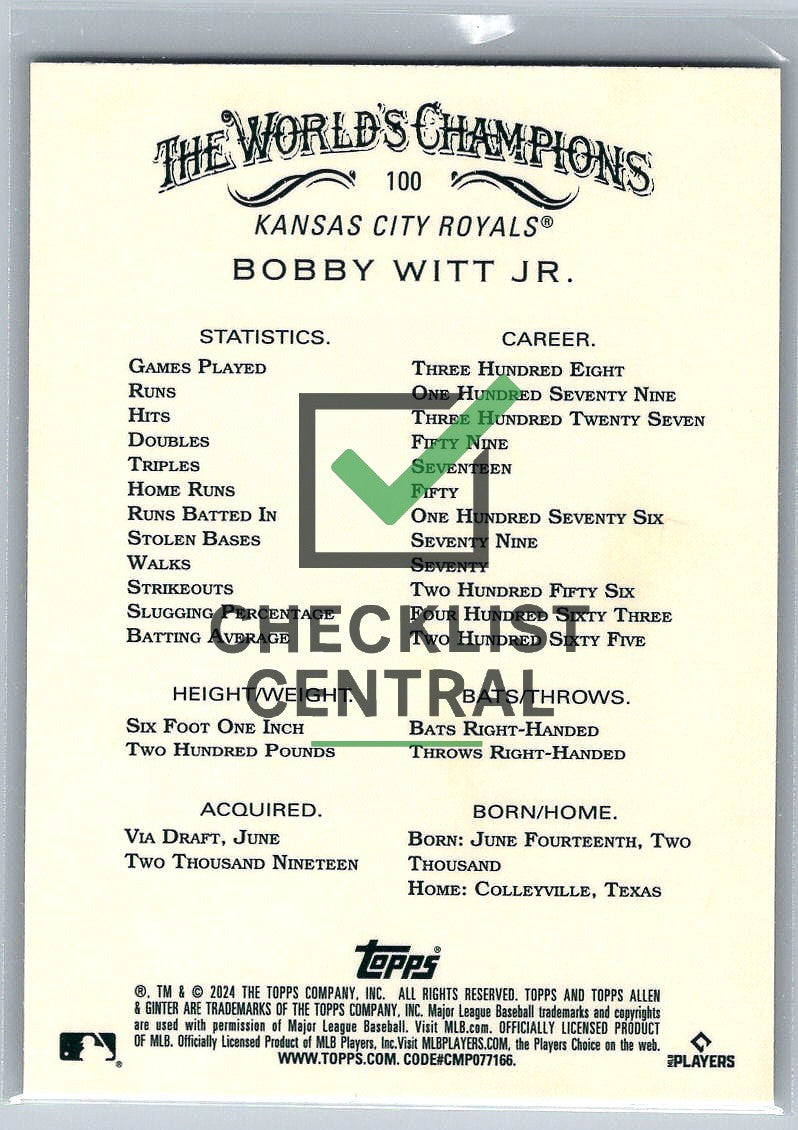 2024 Topps Allen & Ginter Chrome Bobby Witt Jr. #100