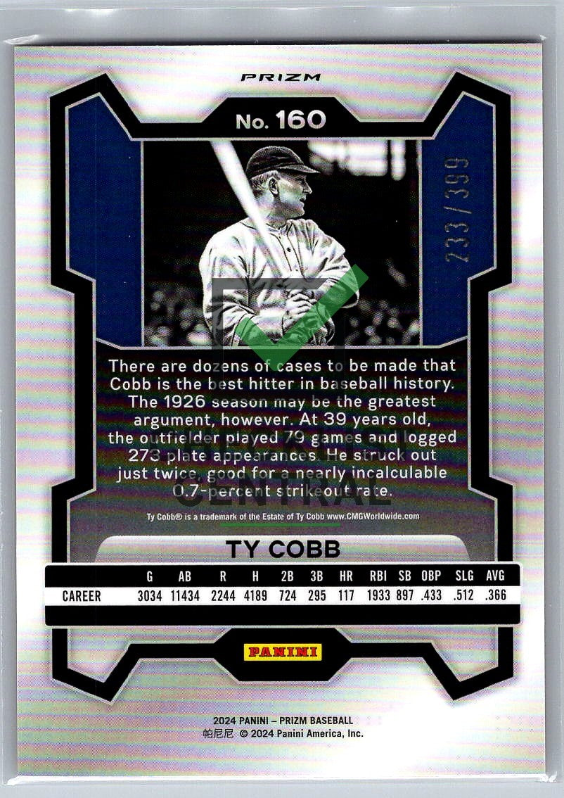 2024 Panini Prizm Prizms Orange Pulsar Ty Cobb #160 - 233/399.