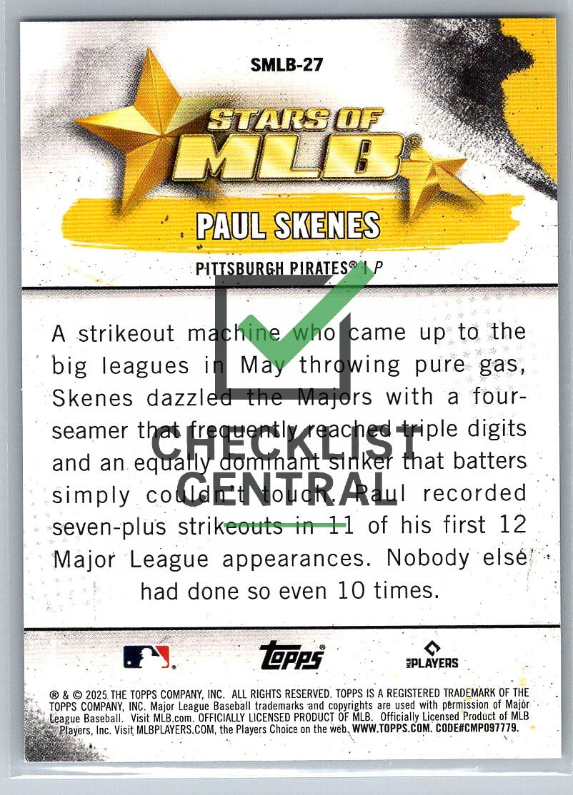 2025 Topps Stars of MLB Paul Skenes #SMLB-27.