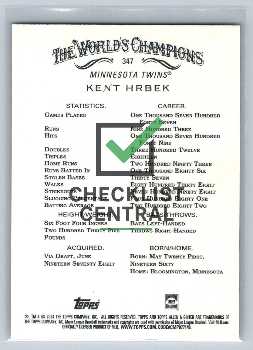2024 Topps Allen & Ginter Kent Hrbek #347 SP.