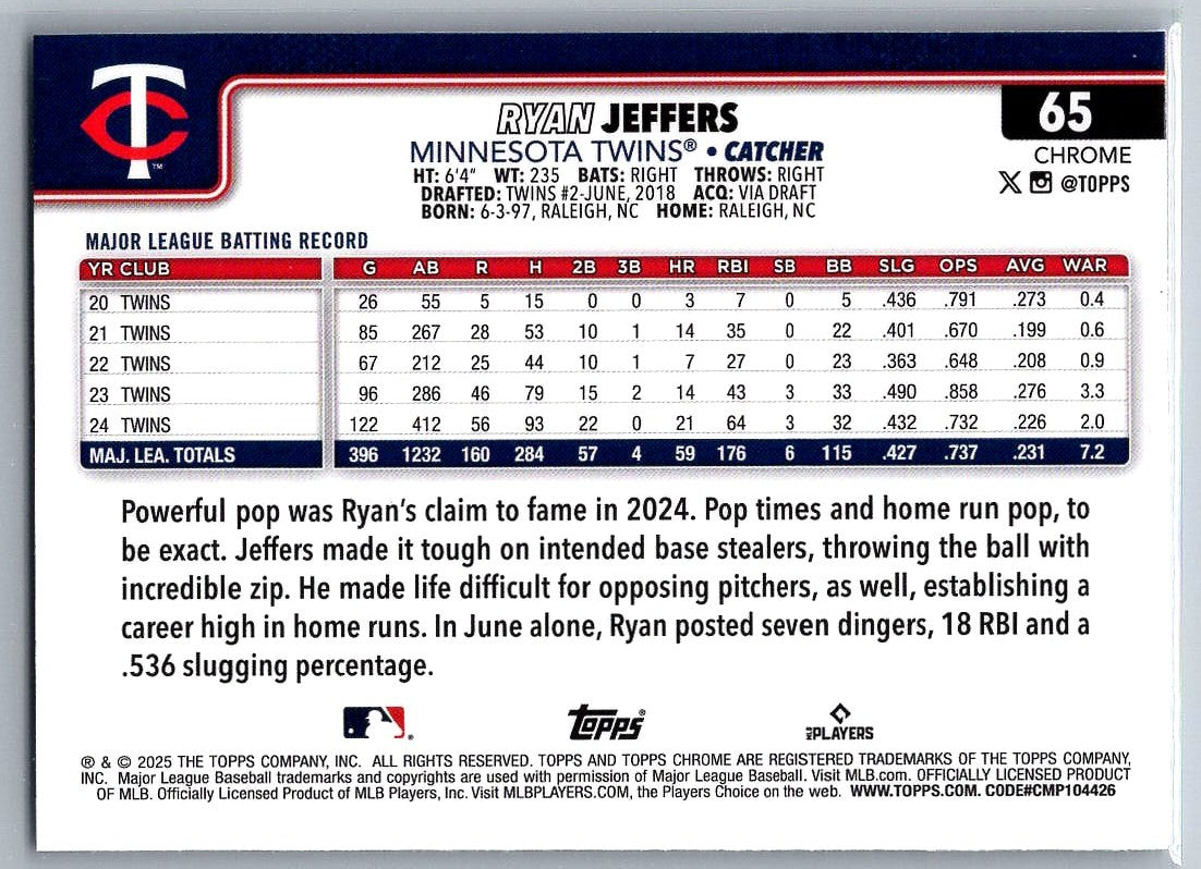 2025 Topps Chrome X-Fractors Ryan Jeffers #65