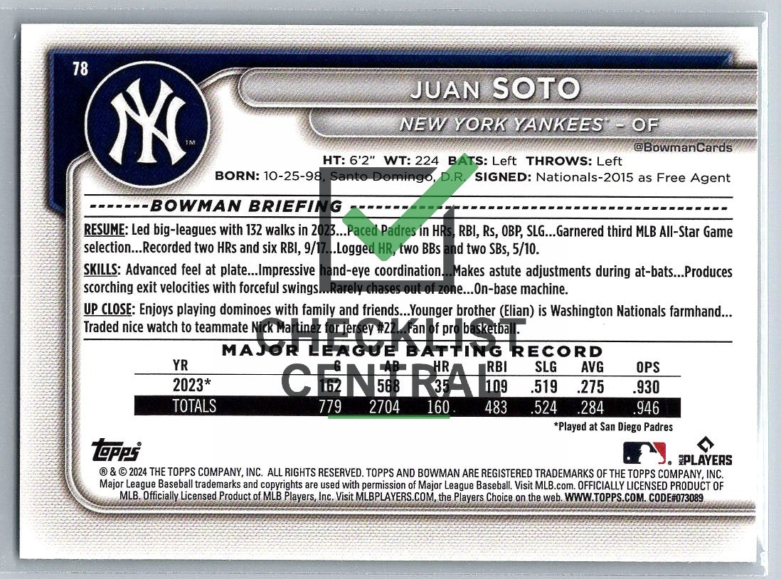 2024 Bowman Green Pattern Juan Soto #78 - 93/99
