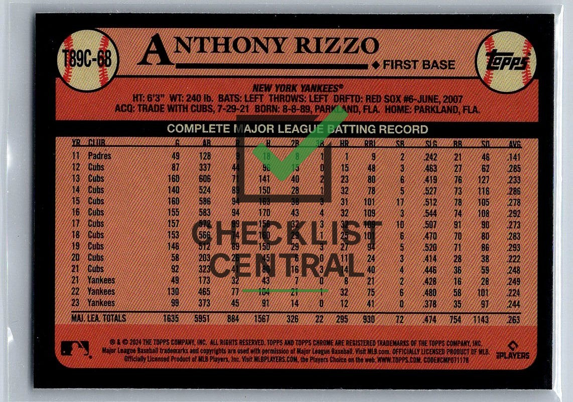2024 Topps '89 Topps Silver Pack Chrome Anthony Rizzo #T89C-68.