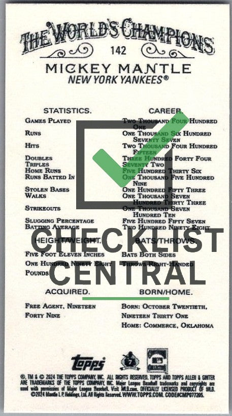 2024 Topps Allen & Ginter Mini Black Border Micky Mantle #142