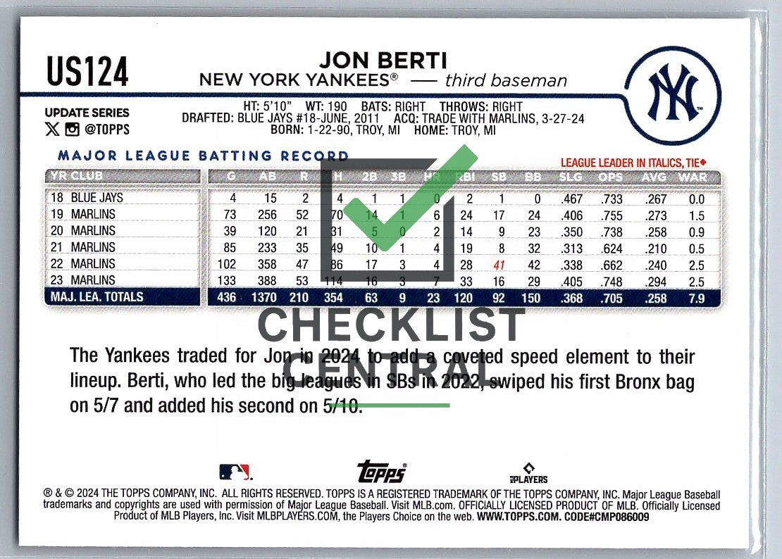 2024 Topps Update Jon Berti #US124.
