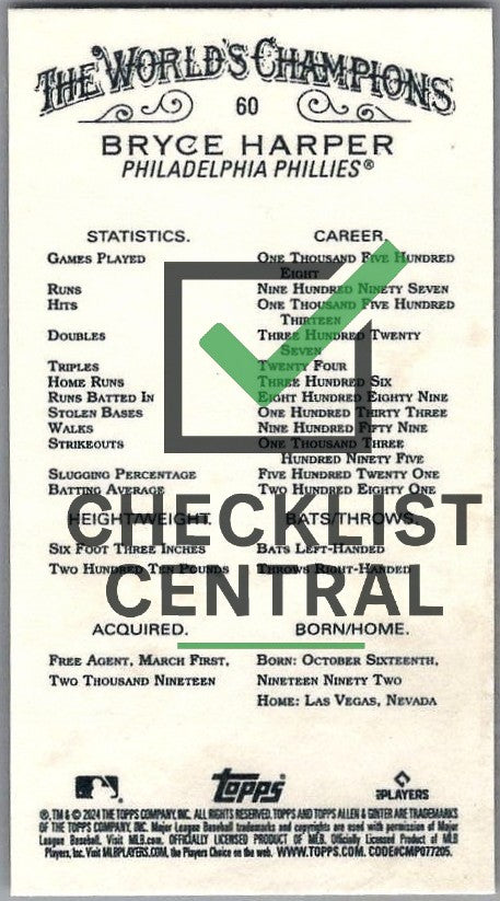 2024 Topps Allen & Ginter Mini Black Border Bryce Harper #60