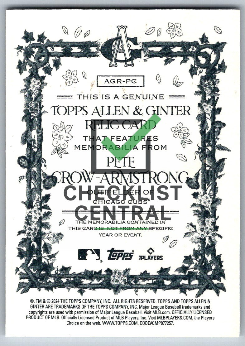 2024 Topps Allen & Ginter Relics Pete Crow-Armstrong #AGR-PC.