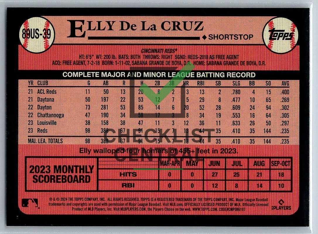 2024 Topps Update '89 Topps Elly De La Cruz #89US-39.