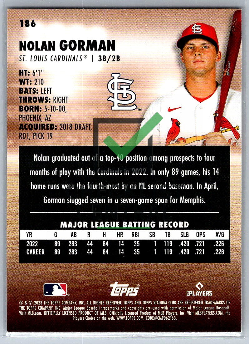 2023 Topps Stadium Club Nolan Gorman #186 RC