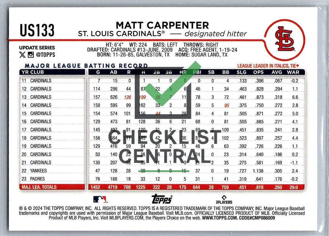 2024 Topps Update Matt Carpenter #US133.