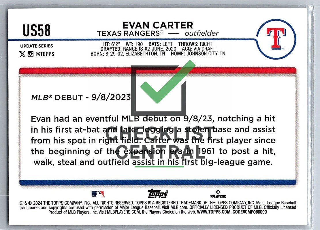 2024 Topps Update Evan Carter #US58.