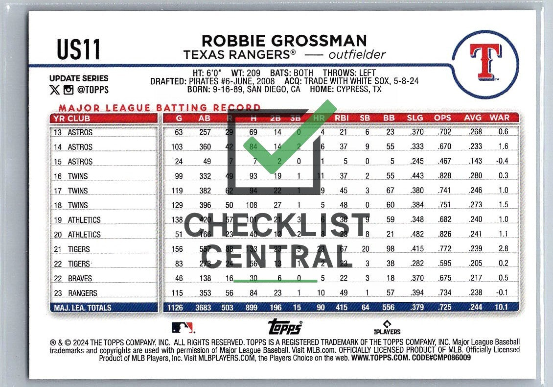 2024 Topps Update Rainbow Foil Robbie Grossman #US11.