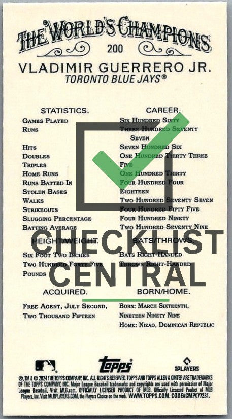 2024 Topps Allen & Ginter Mini Chrome Vladimir Guerrero Jr. #200