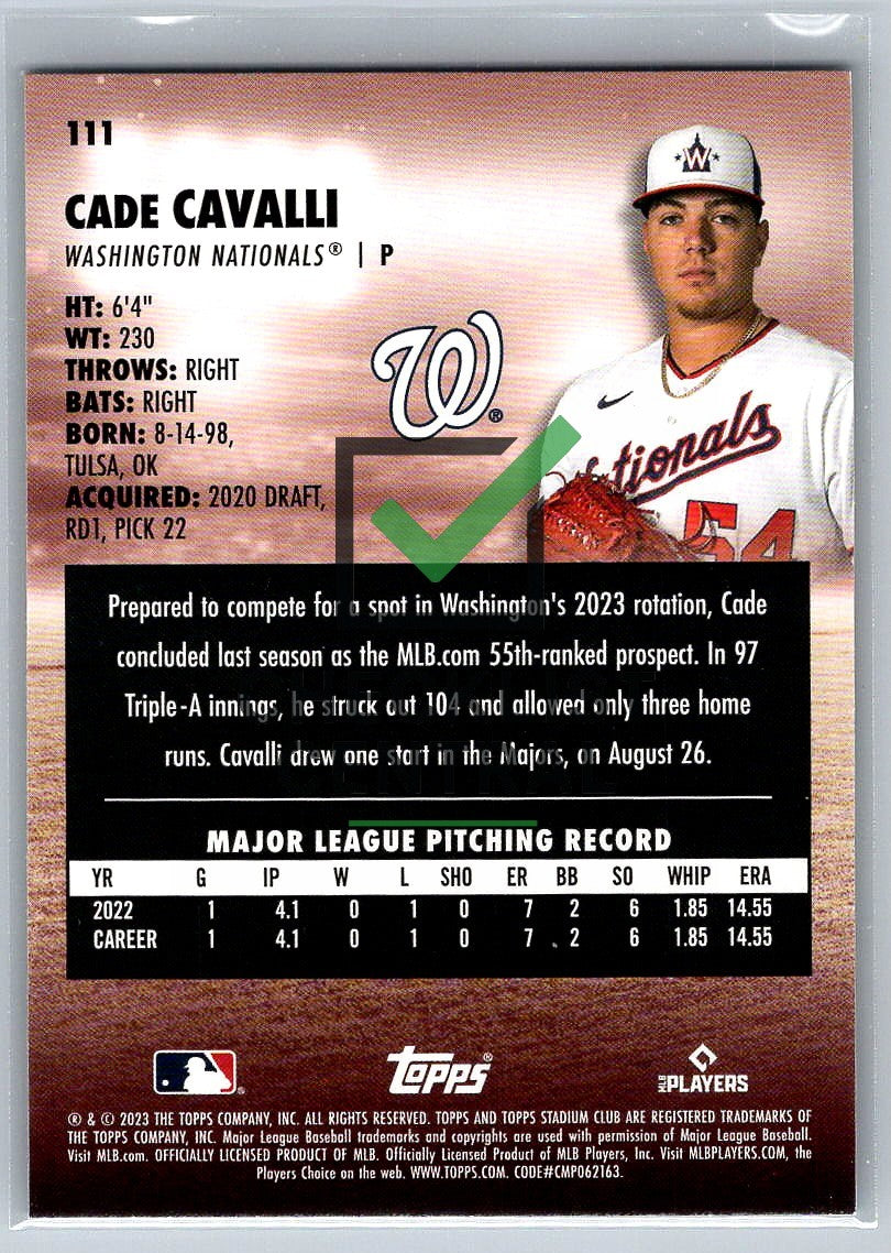 2023 Topps Stadium Club Red Foil Cade Cavalli #111.