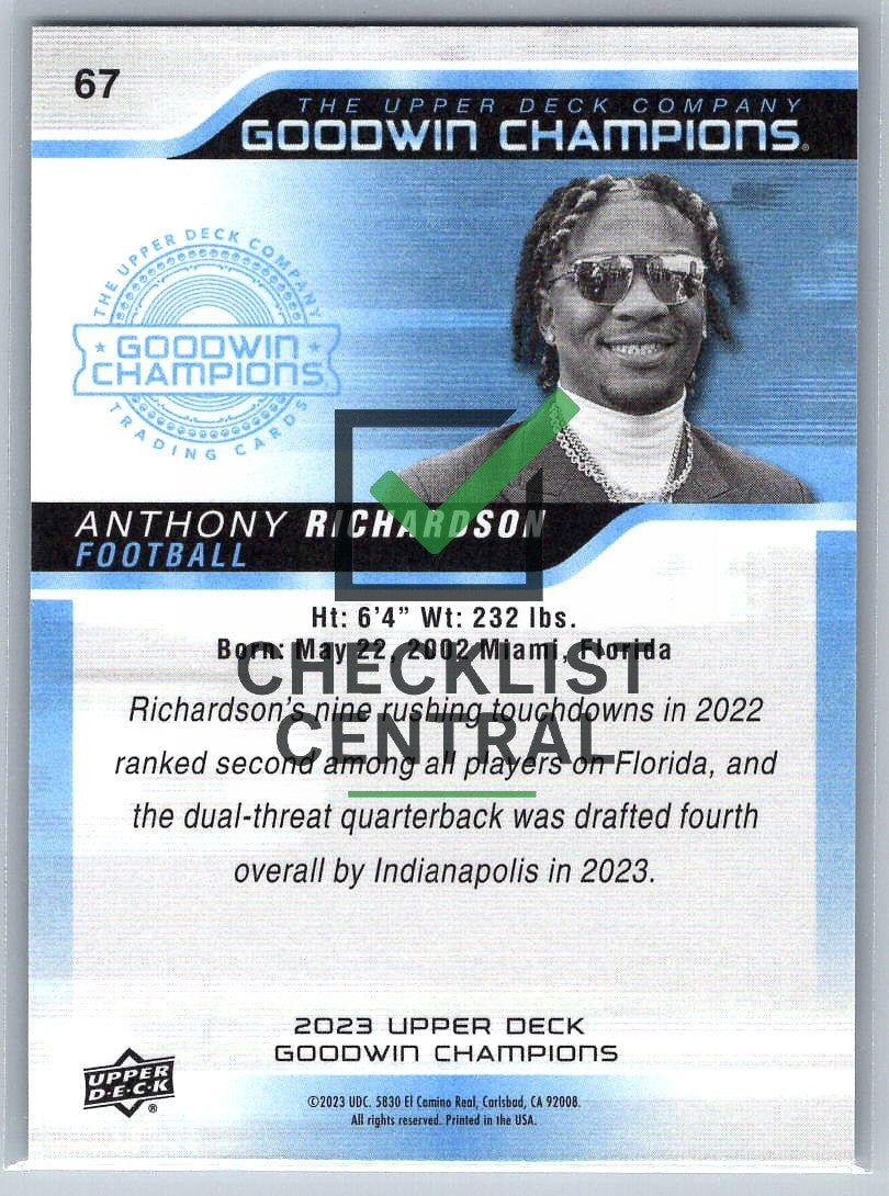 2023 Upper Deck Goodwin Champions Anthony Richardson #67.