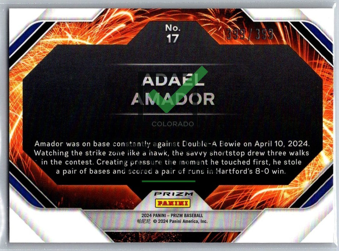 2024 Panini Prizm Fireworks Prizms Orange Pulsar Adael Amador #17 - 399/399.