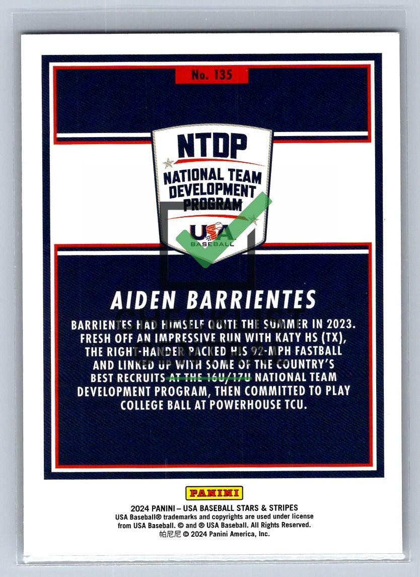 2024 Panini USA Baseball Stars & Stripes Opening Day Aiden Barrientes #135.