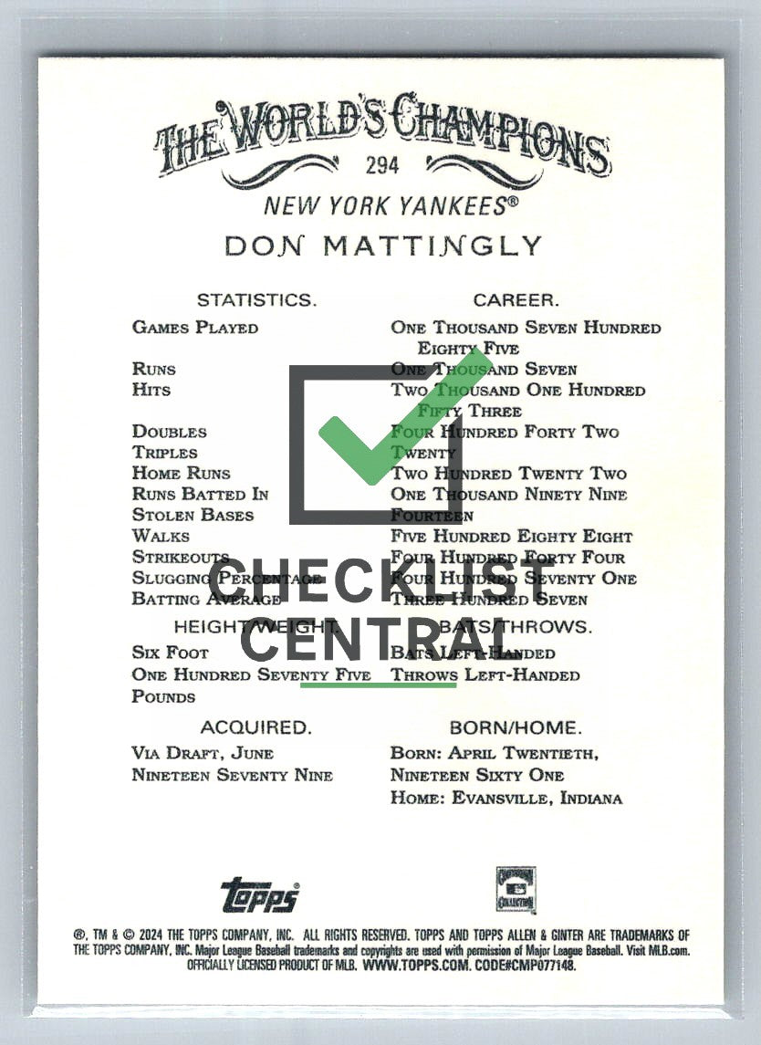 2024 Topps Allen & Ginter Don Mattingly #294.
