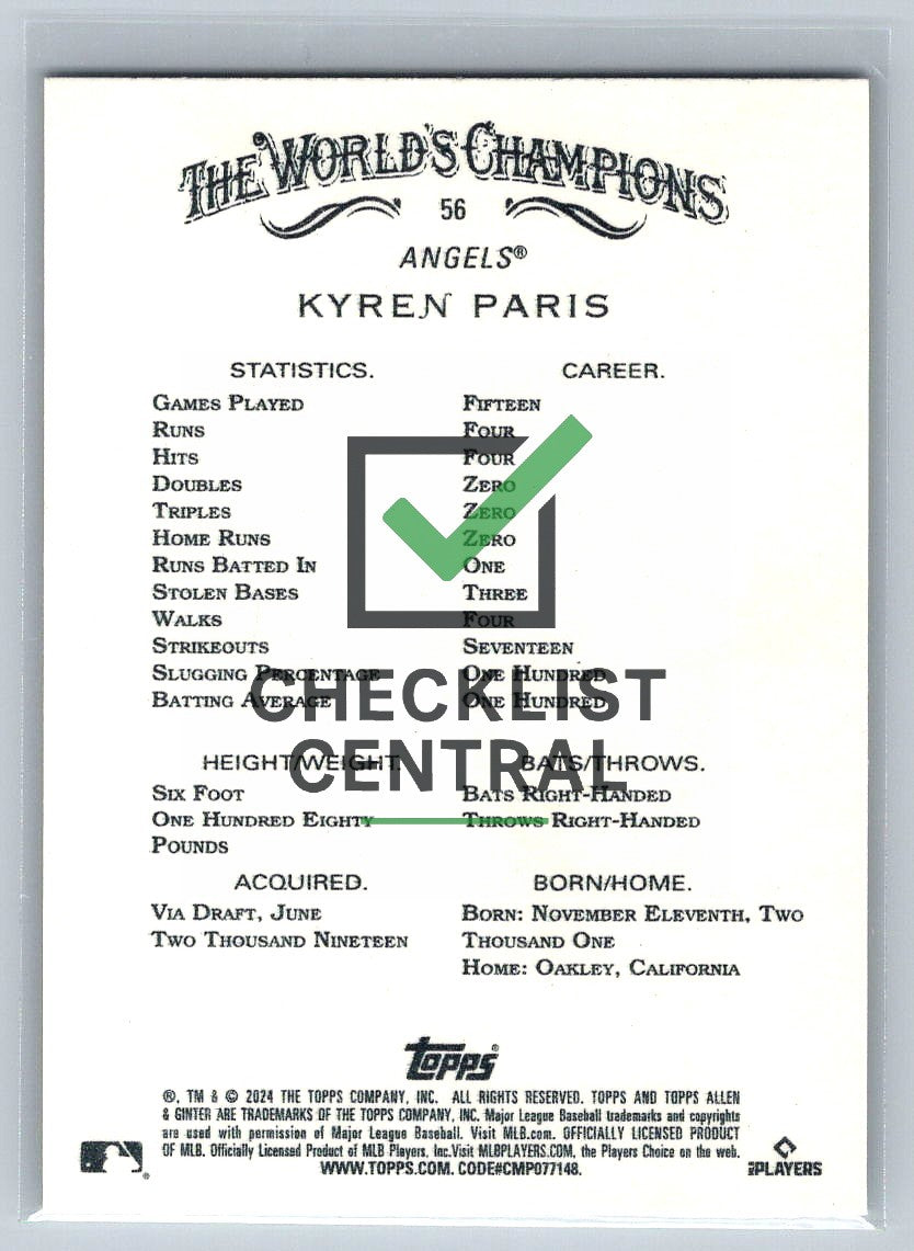 2024 Topps Allen & Ginter Kyren Paris #56.