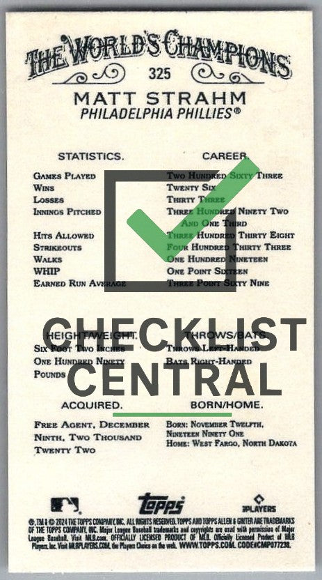 2024 Topps Allen & Ginter Mini Matt Strahm #325 SP