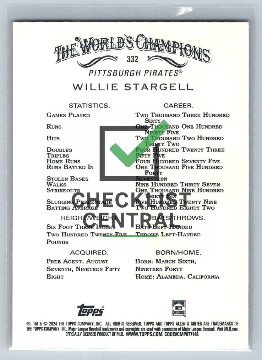 2024 Topps Allen & Ginter Willie Stargell #332 SP