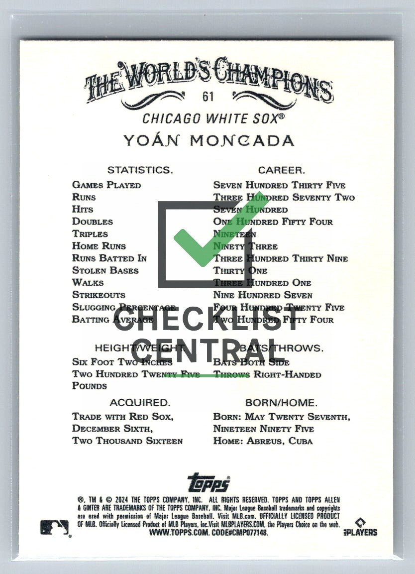 2024 Topps Allen & Ginter Yoan Moncada #61.