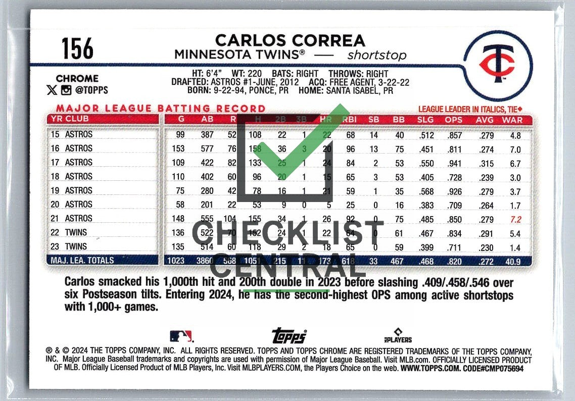 2024 Topps Chrome RayWave Refractors Carlos Correa #156.