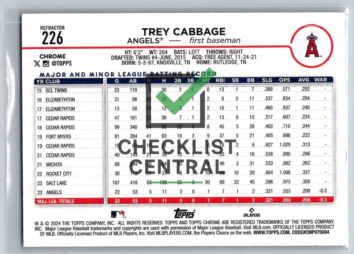 2024 Topps Chrome Refractors Trey Cabbage #226.