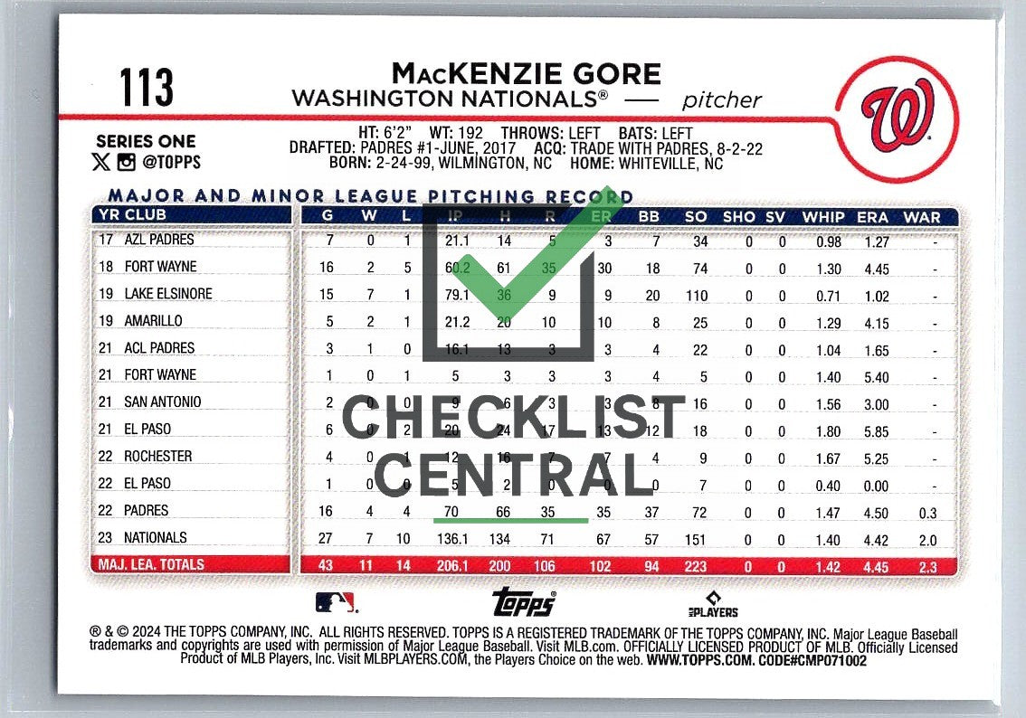 2024 Topps MacKenzie Gore #113.