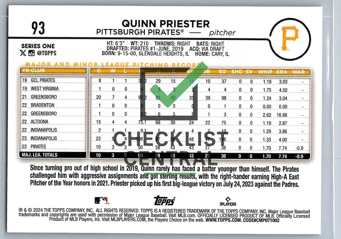 2024 Topps Rainbow Foil Quinn Priester #93.