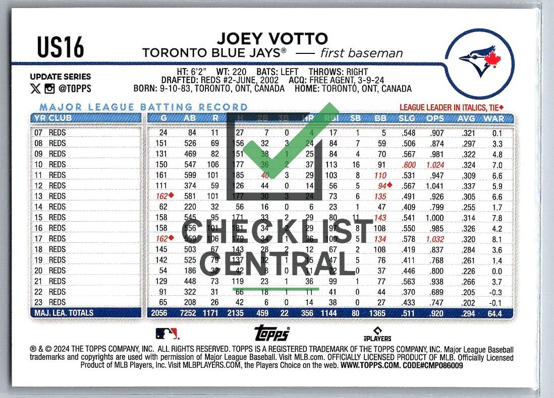 2024 Topps Update Joey Votto #US16.