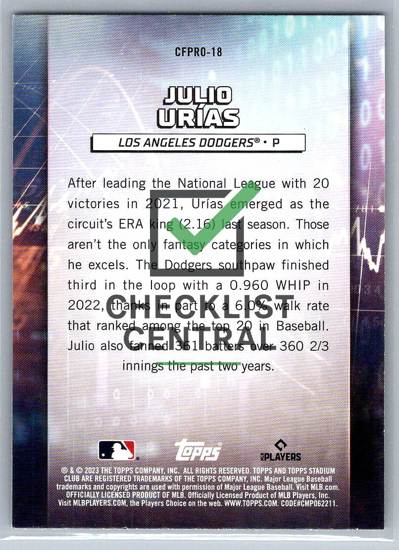 2023 Topps Stadium Club Chief Fantasy Professionals Julio Urías #CFPRO-18